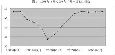 圖1:2008年6月-2009年7月中國PMI指數(shù)