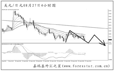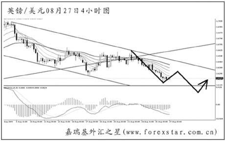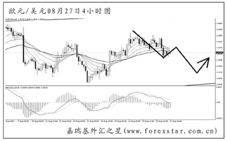 ▲歐元兌美元在高位形成了一個順勢楔形形態(tài),但斜率平緩,不直接構(gòu)成反轉(zhuǎn)效果。短線走勢依舊反復無常,仍需以區(qū)間操作的思路對待歐元,預計后市匯價有重新下探1.4100下方的欲望,但跌破日線圖均線系統(tǒng)依托的希望不大。 |