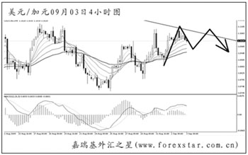 ▲美元兌加元正在挑戰(zhàn)日線圖下降趨勢線及均線系統(tǒng)的雙重壓制位1.1090一線。短線匯價的反彈力度不弱,但直接升破此阻力的希望不大。預(yù)計(jì)下周將以沖高回落的走勢為主。 |