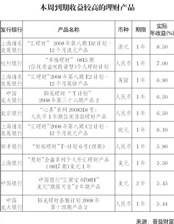 本周到期收益較高的理財產(chǎn)品[圖表]
