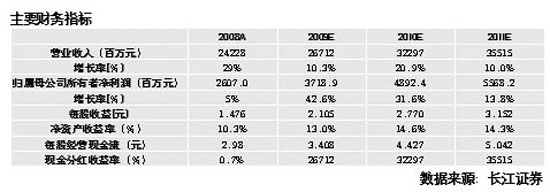 愛建證券認(rèn)為,華東和華南地區(qū)的房地產(chǎn)占比較大,公司的水泥銷售對(duì)此依賴較大。2009年初以來,隨著房地產(chǎn)行業(yè)的逐步復(fù)蘇回升,水泥需求有所回升,未來仍可期待。而公司在中西部地區(qū)生產(chǎn)項(xiàng)目的逐步投產(chǎn)將能夠充分享受該地區(qū)較高的毛利水平并提升公司的盈利能力。