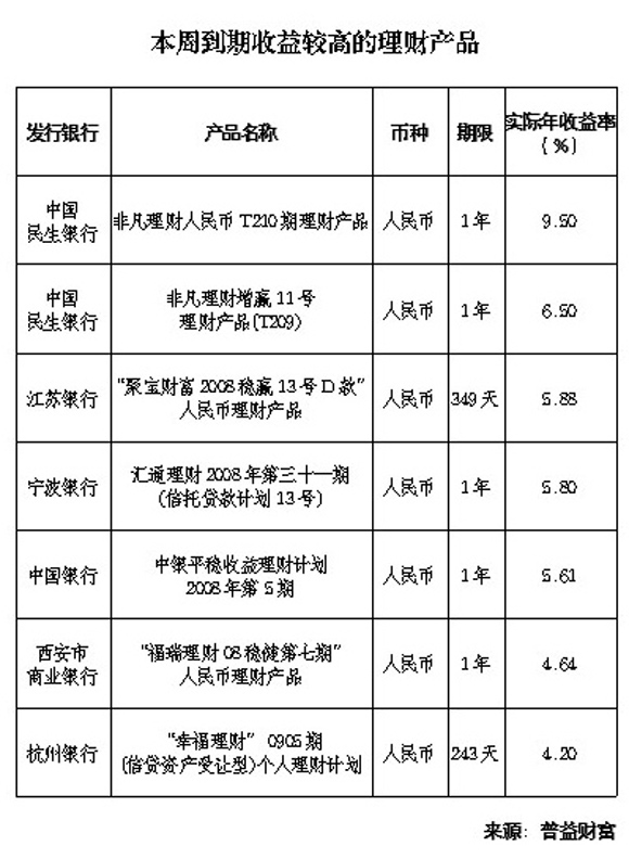 本周到期收益較高的理財(cái)產(chǎn)品[表]