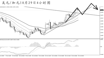 美元兌加元上方面臨的重要阻力位在1.0990,客觀趨勢(shì)進(jìn)入到轉(zhuǎn)換市。短線美加沿上升趨勢(shì)線運(yùn)行,預(yù)計(jì)匯價(jià)調(diào)整結(jié)束仍會(huì)有一波沖高,但直接改變中線跌勢(shì)的希望不大。 |