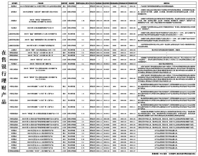 在售銀行理財(cái)產(chǎn)品【圖表】