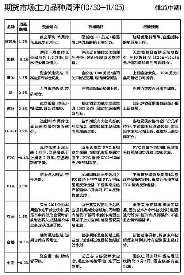期貨市場(chǎng)主力品種周評(píng)[10.30—11.05]