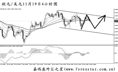 ▲歐元兌美元尚未能突破10月下旬的高點(diǎn)1.5060,繼續(xù)保持高位盤整的節(jié)奏。短線匯價(jià)再度上行逼近了此強(qiáng)阻,且有形成旗形中繼的可能。日線圖均線系統(tǒng)的依托作用良好,仍可看漲歐元,但需警惕匯價(jià)首先向旗形下沿調(diào)整的風(fēng)險(xiǎn)。