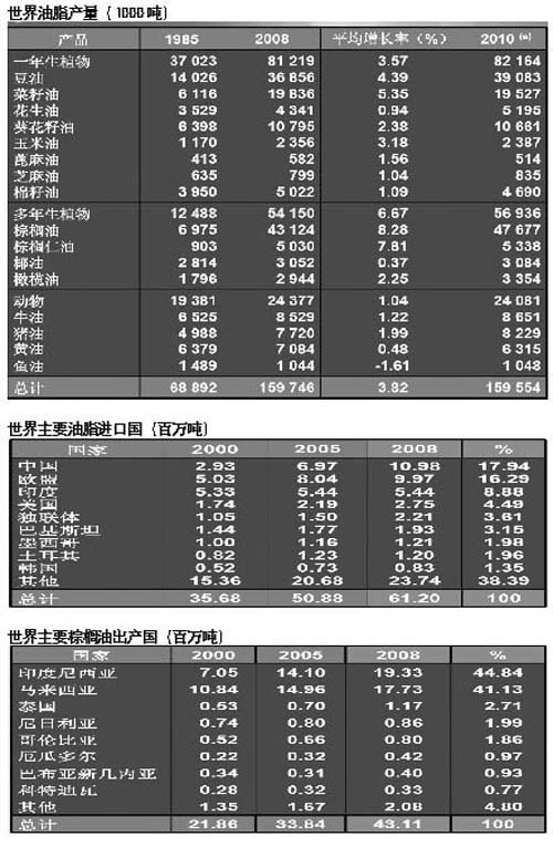 目前世界棕櫚油最大出口國———馬來西亞棕櫚油總署(MPOB)經(jīng)濟(jì)與產(chǎn)業(yè)拓展總監(jiān)FaizahMohdShariff博士日前在“第四屆國際油脂油料大會”上預(yù)測,2010年,印度尼西亞將超越馬來西亞成為東南亞地區(qū)第一大棕櫚油出口國,印度尼西亞和馬來西亞將保持東南亞第一和第二大棕櫚油出產(chǎn)國的地位直至2015年。東亞地區(qū)國家人口高速增長是推動棕櫚油產(chǎn)品需求增長的主要因素,東亞地區(qū)將繼續(xù)成為世界上重要的棕櫚油市場(具體歷史數(shù)據(jù)見下表)。