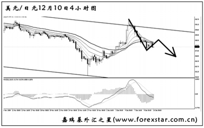 ▲美元兌日元此前的反彈在下降通道上沿遇阻,短線下落力度不弱。4小時(shí)圖MACD已經(jīng)進(jìn)入到空頭動(dòng)能充盈階段。美日此波中線下跌的終極目標(biāo)仍很有希望指向80.00一線,目前操作先以通道思路為主,進(jìn)行上方拋空交易的成功率更大。