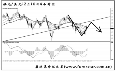 ▲澳元兌美元中線仍保持著非美貨幣中相對(duì)強(qiáng)勢(shì)的姿態(tài),圖中的趨勢(shì)線為日線圖中形成,目前剛剛被跌破。從空間上看,澳元跌破0.8905才能結(jié)束其中線的漲勢(shì),短線做空的目標(biāo)不要低于此位。預(yù)計(jì)匯價(jià)小幅回抽趨勢(shì)線后還將有一波明顯的下調(diào)。