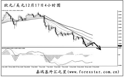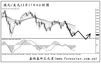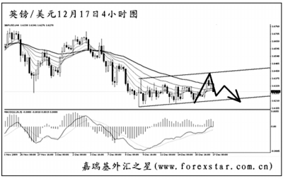 D的底背離信號(hào),但圖中的下降趨勢(shì)線起到了良好的壓制作用。后市等待歐元小幅回調(diào)后繼續(xù)做空的思路不變。