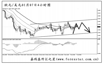 ▲歐元兌美元短線上行回調(diào),未能再對前方低點1.4215發(fā)起沖擊。中線上歐元的下一道支撐在1.4045,下行空間廣闊。重點關(guān)注旗形上沿1.4490的阻力作用,只要不升破此位,歐元就非常有希望創(chuàng)出新低繼續(xù)下行。目前仍需以看空歐元為主。 |