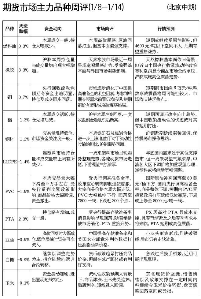 期貨市場(chǎng)主力品種周評(píng)[01.08-01.14]