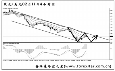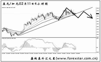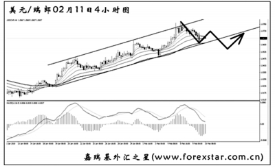 ▲美元兌瑞郎即將考驗通道下沿和均線系統(tǒng)的雙重支撐。從日線圖上看,仍有一定的上漲空間,但短線多頭動能減弱,匯價有進(jìn)一步下調(diào)的風(fēng)險。預(yù)計跌破通道的希望較大,但下跌幅度將一般。在匯價回抽通道下沿時有一定的做空機(jī)會。