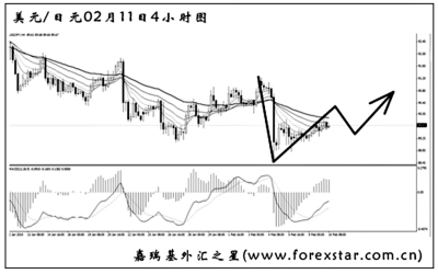 ▲澳元兌美元下跌至日線圖震蕩區(qū)間的下沿,從力度交替的角度考慮,是一個中線買入澳元的機(jī)會點。0.8570是止損的極限,匯價無論如何不能跌破此位,否則下跌空間將被打開,澳元還將有更深程度的下挫。短線可謹(jǐn)慎看漲澳元,但操作時的倉位要輕。