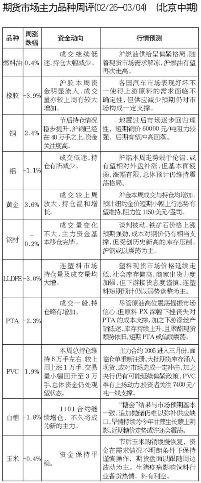 期貨市場(chǎng)主力品種周評(píng)[02.26-03.04]
