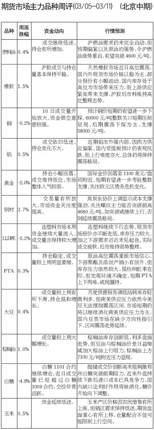 期貨市場(chǎng)主力品種周評(píng)[03.05-03.11]