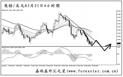 ▲英鎊兌美元短線重新展開跌勢,在圖中下降趨勢線的壓制下走低。無論從短線還是中線上看,英鎊都是典型的跌勢。但下方面臨一個較近的支撐,為3月初的低點1.4780。英鎊接下來將向此位置發(fā)起挑戰(zhàn),但直接跌破的概率不大,走勢將出現(xiàn)一定的反復(fù)。