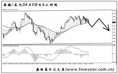▲歐元兌美元未能升破圖中日線圖下降通道上沿的壓制,逐步向前方低點支撐1.3265挺進。從下跌力度來看,歐元跌破此支撐為大概率事件。操作上可以適當(dāng)穩(wěn)健一些,在小時圖出現(xiàn)次要節(jié)奏調(diào)整的情況下再行入場,以道氏理論顯著高點設(shè)止損。