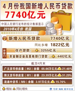 央行周二公布的4月份金融數(shù)據(jù)顯示,當(dāng)月,新增人民幣貸款7740億元,較上年同期多增1822億元。這一數(shù)據(jù)也高于此前市場預(yù)期,WIND對14家機構(gòu)的統(tǒng)計顯示,這些機構(gòu)對4月份人民幣新增貸款的預(yù)測中值在6635.7億元。1-4月,新增人民幣貸款累計已達3.37萬億元,至今新增人民幣貸款已達全年目標的45%左右。 “4月份,信貸投放7740億元,比我們的預(yù)期值高2240億元。二季度預(yù)計信貸投放量在2萬億左右,調(diào)控基調(diào)仍趨緊。信貸超預(yù)期多投放,或是推動之前央行調(diào)準備金率的原因之一!鄙赉y萬國首席宏觀經(jīng)濟分析師李慧勇說。 對于未來的信貸增長,經(jīng)濟學(xué)家普遍認為,大幅增加的可能性不大。 “從近幾個月的情況來看,信貸額度控制的效果較為明顯,銀行基本按照既定額度進行均衡投放。近期出臺的房地產(chǎn)調(diào)控措施不但提高了貸款門檻,還會導(dǎo)致房地產(chǎn)市場觀望氣氛的形成,未來個人貸款增長乏力。預(yù)計未來信貸將回歸平穩(wěn)增長態(tài)勢,大幅增加的可能性不大。同時,在票據(jù)存量有限、企業(yè)流動資金貸款需求上升以及銀行主動進行結(jié)構(gòu)調(diào)整的情況下,未來貸款期限結(jié)構(gòu)趨于優(yōu)化!苯恍薪鹧兄行难芯繂T鄂永健說。 另外一個重要的金融數(shù)據(jù)——廣義貨幣供應(yīng)量(M2)的增速也進一步回籠,但仍然繼續(xù)處于高位。截至4月末,M2余額65.66萬億元,較上年同期增長21.48%,增速低于3月末的22.5%,也低于上年同期25.95%的增速。但是,中國今年全年的M2增速目標設(shè)置在17%左右。4月份的最新M2數(shù)據(jù)顯示,中國目前流動性依然充裕,這將有利于維持經(jīng)濟的持續(xù)高增長,卻不利于達成控制資產(chǎn)泡沫和管理通脹預(yù)期的目標。 中國銀行的中銀分析周報表示,資產(chǎn)價格的短期走勢無疑受到行業(yè)政策的顯著影響,但是長期趨勢與宏觀環(huán)境和流動性環(huán)境密切相關(guān),宏觀流動性因素支持中國房地產(chǎn)市場與股市可能出現(xiàn)此消彼長的走勢。 當(dāng)前,宏觀經(jīng)濟管理部門對資產(chǎn)泡沫和通脹預(yù)期十分重視,至今,中國已3次上調(diào)存款準備金率,還通過窗口指導(dǎo)等方式嚴格控制銀行貸款,以減少流動性泛濫的風(fēng)險。這一政策組合使得二季度初并未出現(xiàn)年初貸款激增局面,1月份新增人民幣貸款高達1.39萬億。 鑒于這種流動性充裕的局面依舊,未來的貨幣政策走向引人關(guān)注!霸谕鈪R占款增長較快的情況下,僅憑公開市場操作難以完成回籠資金的目的。未來外匯占款的變化情況需要持續(xù)予以密切關(guān)注,視具體情況年內(nèi)準備金率可能繼續(xù)上調(diào)0.5-1.5個百分點!倍跤澜≌f,在公開市場,央行也會在未來幾個月內(nèi)繼續(xù)保持大規(guī)模回籠態(tài)勢。 不過,對于近期是否動用價格工具,一些機構(gòu)認為,短期內(nèi)加息的必要性有所降低。交通銀行預(yù)計,利率調(diào)整可能要到三季度以后,維持上調(diào)1-2次、27-54個基點的判斷。原因在于:一是還需觀察負利率是否形成長期趨勢;二是未來經(jīng)濟過熱的風(fēng)險降低;三是近日國內(nèi)股市大幅下挫,調(diào)控對房價的影響也會逐漸體現(xiàn),資產(chǎn)價格正在被擠壓;四是南歐債務(wù)危機襲擊全球金融市場,預(yù)計歐美各國將繼續(xù)保持低利率水平,其他國家或也推遲升息步伐。