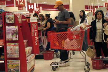 消費(fèi)者開支是美國(guó)今年經(jīng)濟(jì)第一季度增長(zhǎng)主要推動(dòng)力。4月30日,顧客在美國(guó)紐約的一家Target連鎖超市內(nèi)購(gòu)物。新華社記者 劉欣