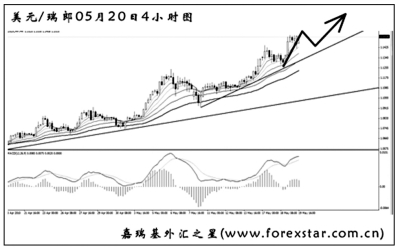 ▲美元兌瑞郎一路上沖,有連續(xù)第三周收出大陽線的可能。若圖中的小上升趨勢線保持完好,下周美元兌瑞郎即有望挑戰(zhàn)1.1970一線下方的阻力。短線以做多美元兌瑞郎為主,但在市場進(jìn)入到極大波幅期的時(shí)候,應(yīng)及時(shí)調(diào)整倉位,嚴(yán)格控制交易風(fēng)險(xiǎn)。