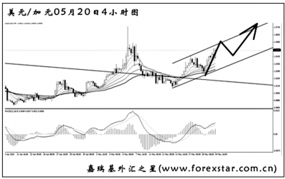 ▲美元兌加元將包含MACD底背離點(diǎn)的下降趨勢線升破后逐步反彈上行,4小時(shí)圖中客觀趨勢橫盤。短線匯價(jià)形成一個(gè)小的上升通道,匯價(jià)將沿此通道繼續(xù)上行。首先關(guān)注前波反彈高點(diǎn)1.0740的阻力作用,若升破,美元兌加元還將有更為顯著的上行走勢。 |