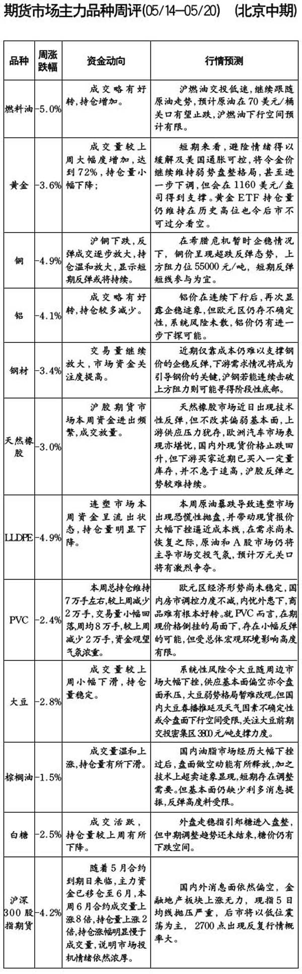 期貨市場(chǎng)主力品種周評(píng)[05.14-05-20]