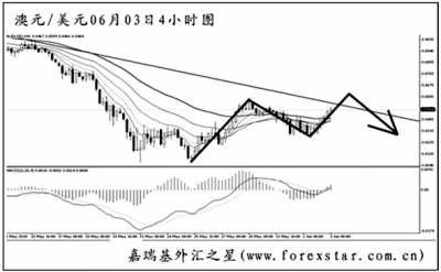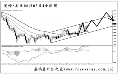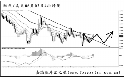 ▲歐元兌美元4小時圖中持續(xù)發(fā)生了MACD的底背離信號,目前包含背離點的圖中下降趨勢線剛剛被升穿,若能形成有效突破,歐元有望展開一波明顯的上調(diào)。上方最近的強阻在1.2455,預(yù)計匯價將在此一帶遇阻,隨后探底,但再度大幅創(chuàng)新低的希望不大。
