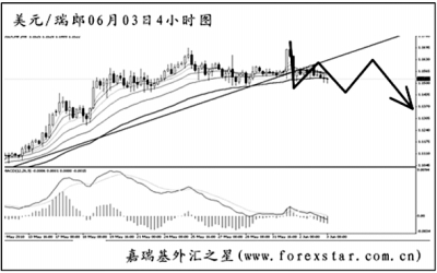 ▲美元兌瑞郎在小幅創(chuàng)出新高之后急速下跌,圖中發(fā)出了角度明顯的MACD頂背離信號。最近一周多以來,匯價的震蕩節(jié)奏明顯,對交易的影響較大。雖然中線上的漲勢沒有任何改變,但短線繼續(xù)沖高的動能已顯不足,預(yù)計下周將是一個逐步下跌調(diào)整的走勢。