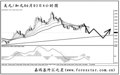 ▲美元兌加元經(jīng)過了一波強力的反彈之后下落調(diào)整,圖中的上升趨勢線為日線圖形成,預(yù)計將對匯價產(chǎn)生一定的支撐作用。美元兌加元最近一段時間的走勢凌亂,對交易不利,F(xiàn)重點觀察此趨勢線的支撐力度,若不能跌破,后市還將有一波明顯的上行。 |