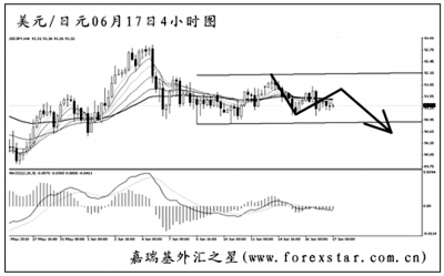 ▲美元兌日元延續(xù)著自身震蕩的走勢,從圖上看,匯價(jià)運(yùn)行在一個(gè)震蕩區(qū)間之中,此區(qū)間為前方下跌的次要節(jié)奏調(diào)整,后市向下突破的希望較大。這次震蕩時(shí)間已經(jīng)超過了一周,預(yù)示著距離行情暴發(fā)已經(jīng)不遠(yuǎn)。交易上以做空為主,同時(shí)關(guān)注突破后跟進(jìn)的機(jī)會(huì)。