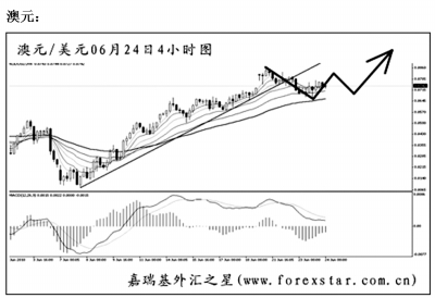 ▲澳元兌美元將圖中的上升趨勢線跌破,由于此前低位的震蕩區(qū)間上沿也被順利越過,澳元又重新形成了階段性的漲勢。目前匯價(jià)的上漲力度強(qiáng)勁,均線系統(tǒng)依托排列,且上方的空間也十分廣闊。所以對于澳元可繼續(xù)尋找做多的機(jī)會。后市再度走向0.9000的概率很大。