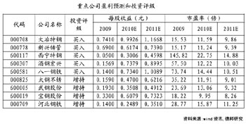 鋼鐵業(yè)還有其他兩類題材也可以關(guān)注,就是特鋼公司和受益區(qū)域經(jīng)濟發(fā)展的公司。 愛建證券發(fā)布的報告表示,下半年具體投資策略可遵循以下思路:一類是特鋼行業(yè),如大冶特鋼、中原特鋼等,另一類是受益于區(qū)域經(jīng)濟大發(fā)展的公司如八一鋼鐵。 報告稱,特鋼行業(yè)盈利較普鋼行業(yè)更穩(wěn)定。由于特鋼行業(yè)從生產(chǎn)工藝到產(chǎn)品用途與普通碳鋼都有著很大差別,因此普通碳鋼所面臨的諸如產(chǎn)能過剩、原材料價格上漲對特鋼而言,都不會構(gòu)成太大的問題。而且特鋼產(chǎn)品具有良好市場前景,從過去幾年的情況看,特鋼產(chǎn)品即便有成本上漲壓力也能夠通過向下游提價轉(zhuǎn)移釋放,使毛利率繼續(xù)保持穩(wěn)定。因此可以看到,在最近一年的走勢中,特鋼股票明顯要強于普鋼股票。下半年仍可關(guān)注特鋼類上市公司,如大冶特鋼、中原特鋼等。 區(qū)域經(jīng)濟發(fā)展也將帶來一定機會。該券商報告表示,中期來看,到2015年新疆人均地區(qū)生產(chǎn)總值達(dá)到全國平均水平,城鄉(xiāng)居民收入和人均基本公共服務(wù)能力達(dá)到西部地區(qū)平均水平,基礎(chǔ)設(shè)施條件明顯改善,“十二五”期間新疆全社會固定資產(chǎn)投資規(guī)模將比“十一五”期間翻一番多;長期來看,到2020年,確保實現(xiàn)全面建設(shè)小康社會的奮斗目標(biāo),基本消除絕對貧困現(xiàn)象。預(yù)計中央會繼續(xù)加大對新疆地區(qū)的基礎(chǔ)設(shè)施投入,包括電網(wǎng)、鐵路、公路的建設(shè)和部分地區(qū)的住房改造。因此,未來幾年新疆地區(qū)的鋼材需求增速將大大高于國內(nèi)平均水平,這將讓疆內(nèi)唯一的鋼鐵公司——八一鋼鐵受益不少。 東方證券也表示,從結(jié)構(gòu)看,具備產(chǎn)品優(yōu)勢和區(qū)域優(yōu)勢的鋼鐵公司,目前調(diào)整后的股價已經(jīng)具有吸引力。重點推薦:大冶特鋼、八一鋼鐵、寶鋼股份。 |
