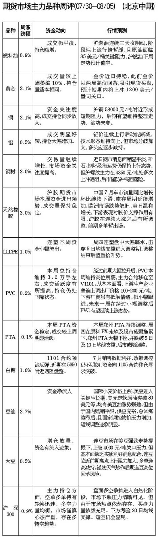 期貨市場主力品種周評[2010.07.09-2010.07.15]