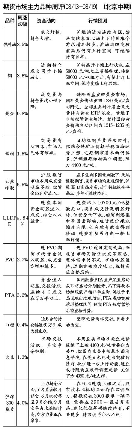期貨市場(chǎng)主力品種周評(píng)[08/13-08/19]