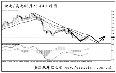 ▲英鎊兌美元小幅跌破了順勢旗形的下沿,此后發(fā)力反彈,將下降趨勢線升破。從圖中來看,英鎊短線的下跌動能持續(xù)減弱,后市匯價有繼續(xù)上沖的動力。但升破1.5700一線阻力非常關(guān)鍵,決定了后市能否回歸中線的漲勢。短線以做多為主,但目標不宜看得過遠。
