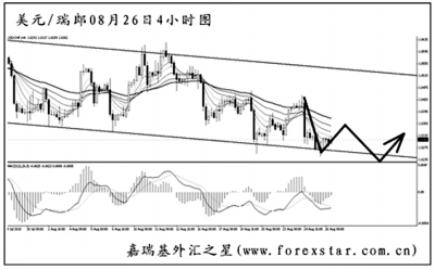 ▲美元兌瑞郎保持在日線圖順勢旗形的通道內(nèi)震蕩運行,此區(qū)間已經(jīng)保持了1個月有余。由于美元兌瑞郎屬于持續(xù)創(chuàng)新低的走勢,且短線強動能交替節(jié)奏頻繁,無論多空均有較大的風險。現(xiàn)在對于美元兌瑞郎的操作思路就是等此區(qū)間突破后進行跟進交易,后市的行情料將不小。