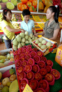 今年4月15日,大陸出臺(tái)惠及臺(tái)灣同胞的15項(xiàng)政策措施,福建廈門建立臺(tái)灣水果銷售集散中心是其中一項(xiàng)舉措。幾個(gè)月來(lái),廈門市著力建設(shè)臺(tái)灣水果交易中心和物流中心,積極開辟“綠色通道”,實(shí)施便捷通關(guān)措施,截至目前,廈門口岸進(jìn)口臺(tái)灣水果已達(dá)52批次442噸,價(jià)值42.4萬(wàn)美元,其中包括菠蘿、芒果、檳榔等16個(gè)品種,70%以上銷往北京、上海、青島、深圳等城市。 |