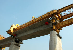 9日上午10時(shí),建設(shè)中的國家“十五”重點(diǎn)建設(shè)項(xiàng)目、目前世界上最大的公鐵兩用橋武漢天興洲長江大橋成功開架重達(dá)900噸的“巨無霸”箱梁,創(chuàng)下了我國鐵路建設(shè)史的一項(xiàng)新紀(jì)錄。據(jù)介紹,900噸箱梁的預(yù)制、轉(zhuǎn)運(yùn)和架設(shè),技術(shù)標(biāo)準(zhǔn)、操作精度和作業(yè)要求高,在我國鐵路建設(shè)史上是首次。 |
