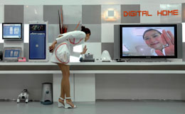 工作人員演示“數(shù)字家庭”的電子裝備。 本報記者 呂小煒 攝 |