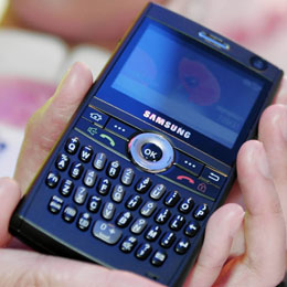 韓國三星公司的一款可拍照商務手機。 本報記者 公磊 攝 |