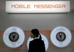 參觀者體驗最新的手機短信系統(tǒng)。 本報記者 公磊 攝 |