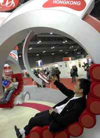在這次電信展上,許多企業(yè)的展館都有兩三層樓高,設計美輪美奐,如阿爾卡特朗訊的“水晶吊燈裝飾”、華為的“樓上咖啡室”、摩托羅拉的“地鐵車廂”等,令人目不暇接。