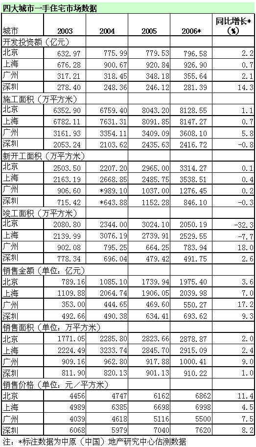 四大城市一手住宅市場(chǎng)數(shù)據(jù)
