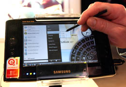 在拉斯維加斯舉行的國際消費電子展上,韓國三星公司展出的七英寸小型筆記本電腦。本報記者:呂明響