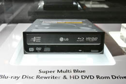 韓國LG電子公司在拉斯維加斯國際消費電子展上推出的全球首款既可播放藍光碟片又能播放高清光盤的雙格式DVD播放器。本報記者:呂明響