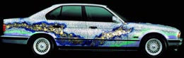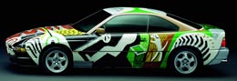 1995年由英國(guó)藝術(shù)家大衛(wèi)·霍尼克創(chuàng)作的BMW850Csi藝術(shù)車。 從汽車的外部可以看見內(nèi)部的創(chuàng)意想法,使霍尼克花了好幾個(gè)月 才完成最后的作品。這個(gè)藝術(shù)構(gòu)想讓作品創(chuàng)造出令人嘖嘖稱奇的透明感。 時(shí)髦的設(shè)計(jì)讓引擎的進(jìn)氣歧管在引擎蓋下一目了然,從車門外可以 一窺駕駛者的廬山真面目——當(dāng)然,還有他的臘腸狗。
