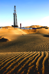 圖為中國(guó)石油集團(tuán)位于塔里木盆地里的沙漠鉆井。