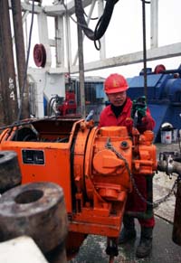 2月22日,中國(guó)石化湖北江漢油田50785鉆井隊(duì)的石油工人在維護(hù)鉆井設(shè)備。春節(jié)期間,江漢油田石油工人堅(jiān)守崗位,確保工期進(jìn)程和施工安全。