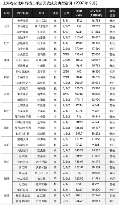 上海各區(qū)域中高檔二手房買賣成交典型案例